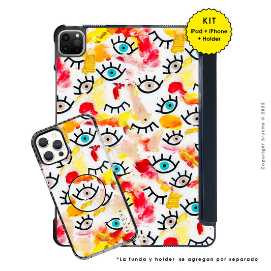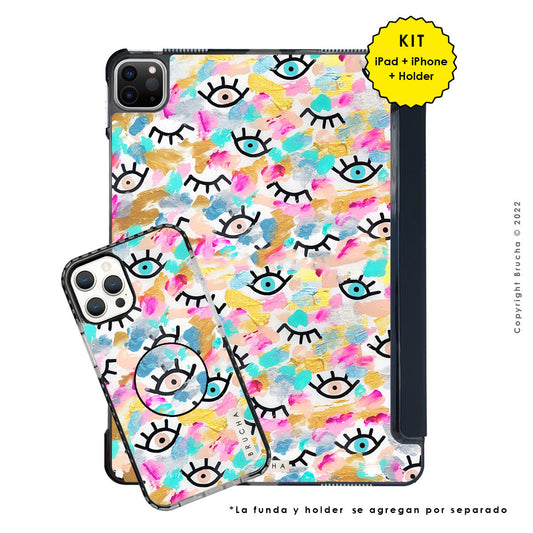 Funda ultra protectora para iPad pintada a mano pieza única - I See You Pastel