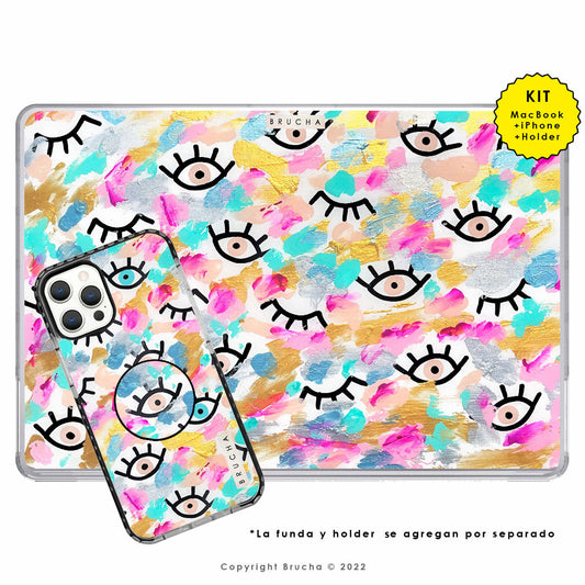 Funda ultra protectora para MacBook pintada a mano pieza única - I See You Pastel